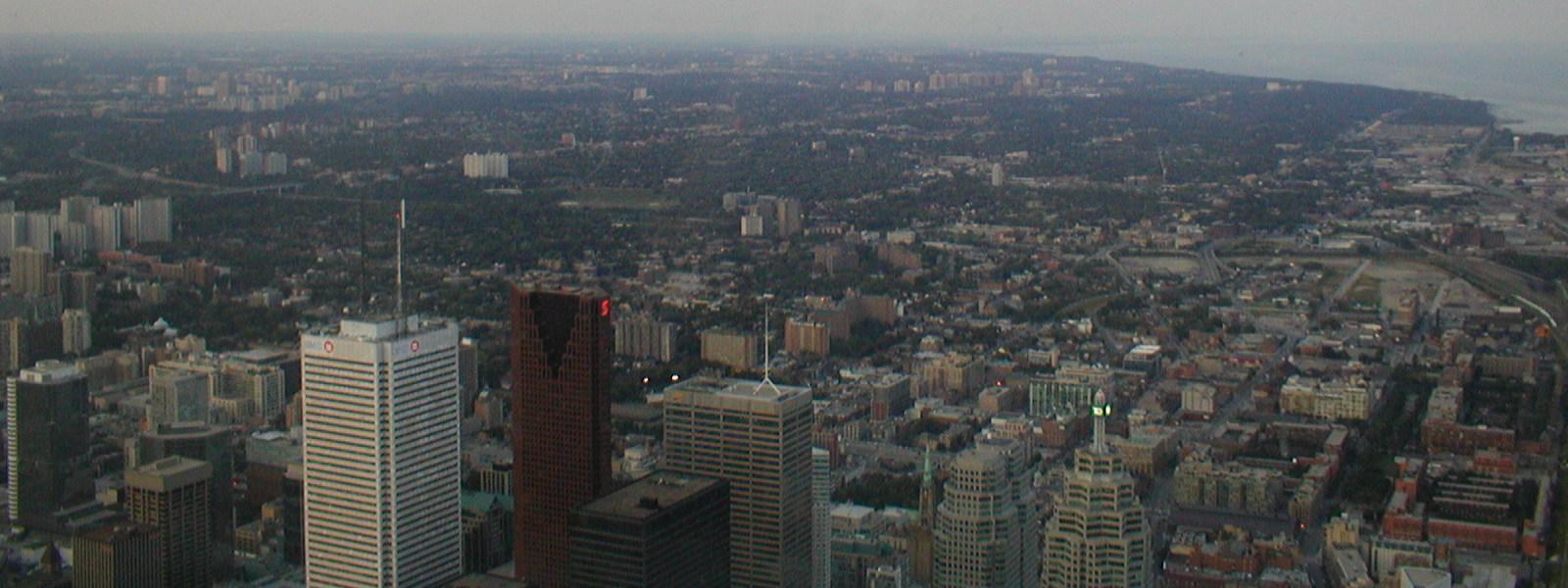 A beautiful cityscape, as seen from the skypod, the highest accessible part of the CN Tower, a whopping 144 stories above the ground